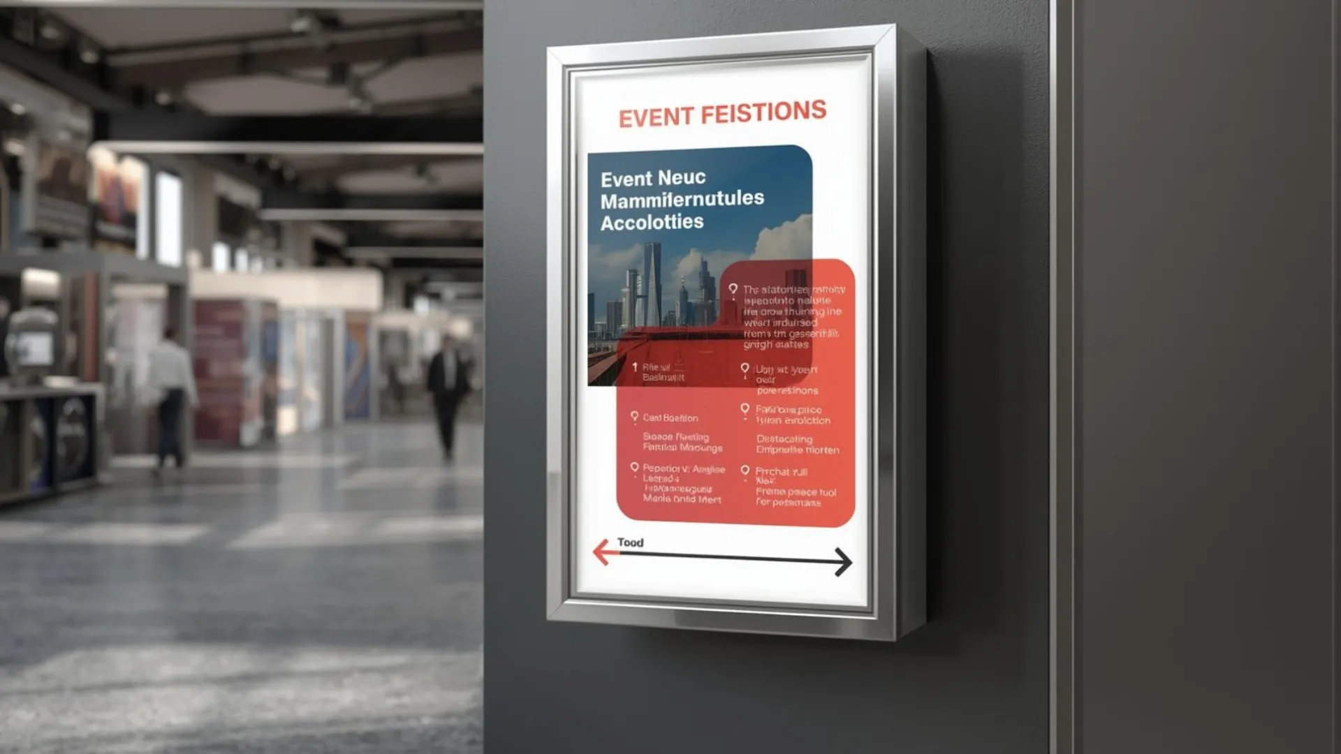 看板の効果は、どこに置くかで大きく左右されます。結論として、来場者の動きを想定しない設置は、見られない看板になりがちです。なぜなら、人は基本的に進行方向と目線の先しか見ないからです。例えば入口付近では、イベント名や概要を大きく伝える看板が有効ですし、ブース前では具体的な強みや数字を示した方が立ち止まりやすくなります。ただし、動線を無視して目立つ場所に置くだけでは、通行の妨げになる可能性もあります。来場者の流れを一度俯瞰して考えると、無理のない設置位置が見えてきます。