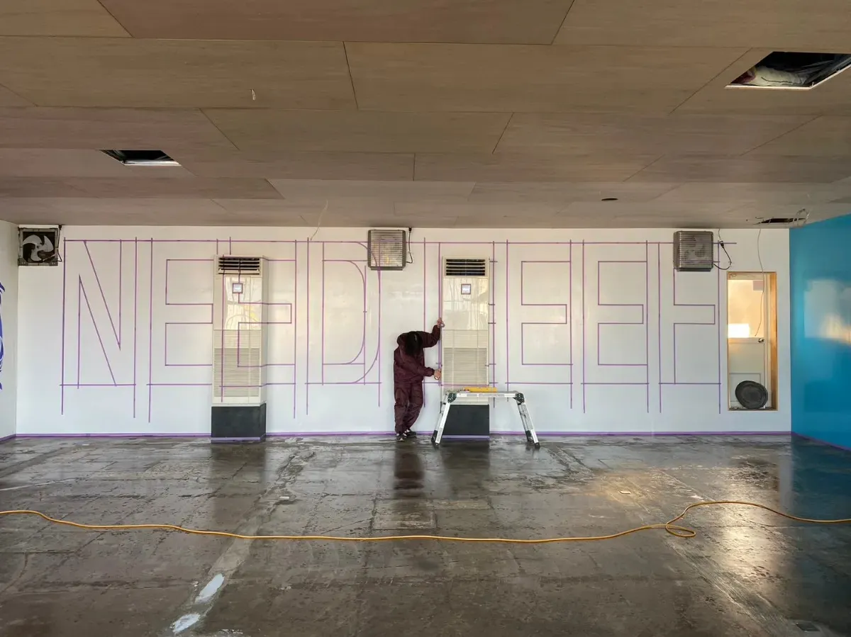 壁には背丈より高い文字のペイントアートの制作を行った。