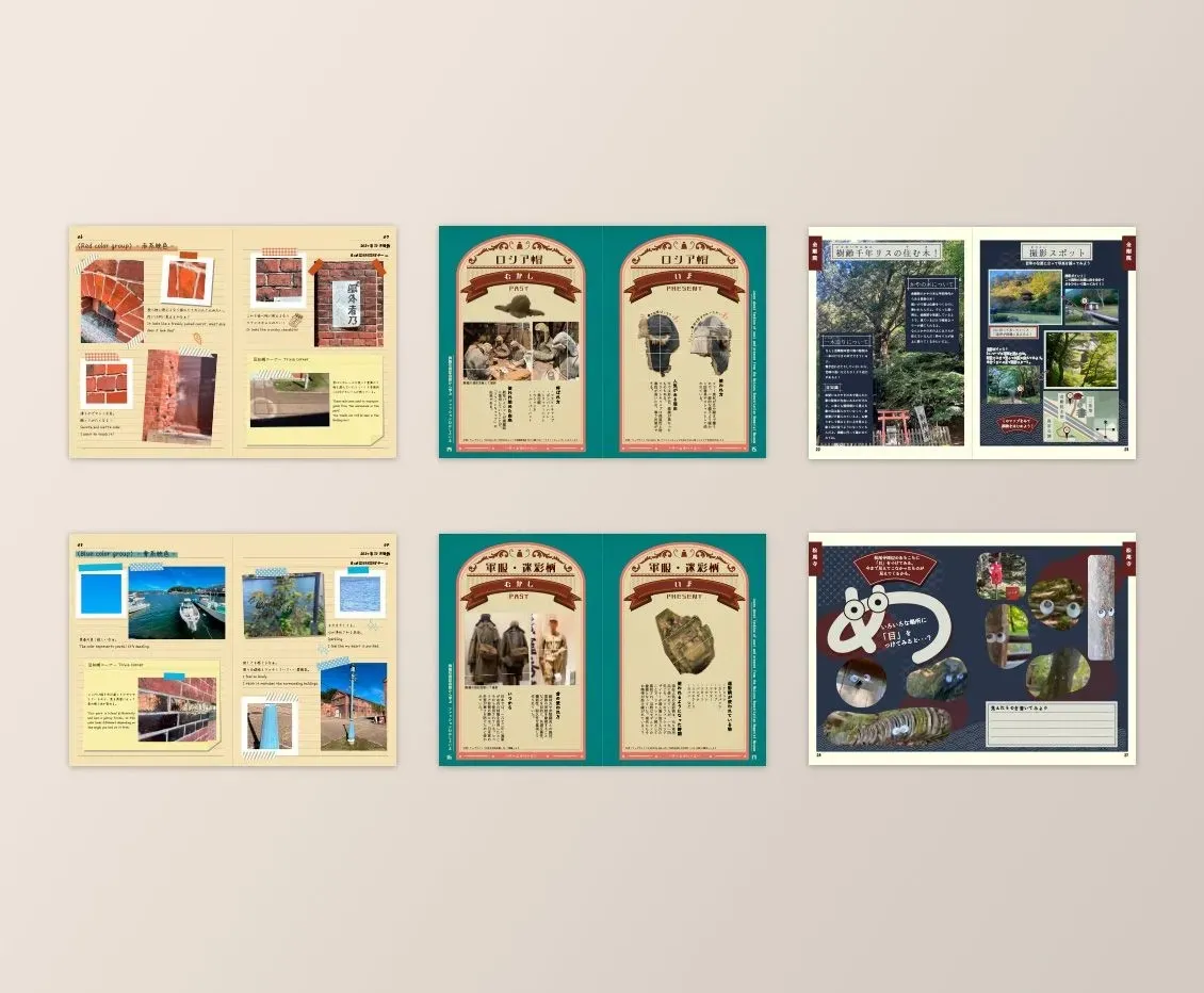 To enrich the regional tourism experience, we also introduced an interactive element by placing special stamps at the four featured tourist sites (Maizuru Red Brick Warehouses, Repatriation Memorial Museum, Kongoin Temple, and Matsunoo Temple). These stamps were designed to create a complete illustration when layered together, allowing visitors to retrace the students' perspectives while exploring the area. This initiative not only enhances engagement but also provides a unique model tourist route that offers a deeper connection to Maizuru's history and culture.
