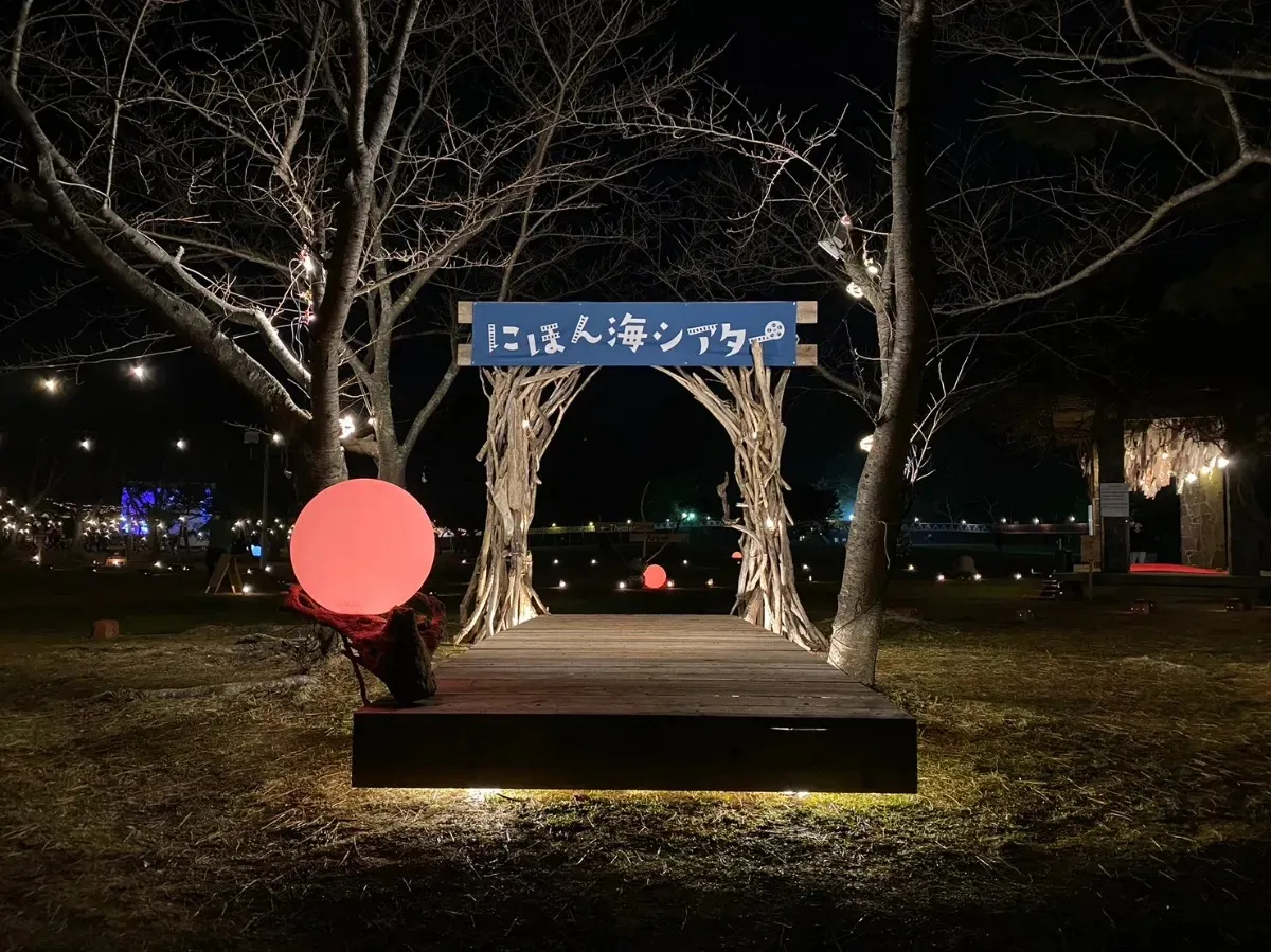 日本海に面した福井県高浜市の城山公園にて、一日限定で開催された町おこしイベント「にほん海シアター」のエントランスとシアターの空間演出を担当した。