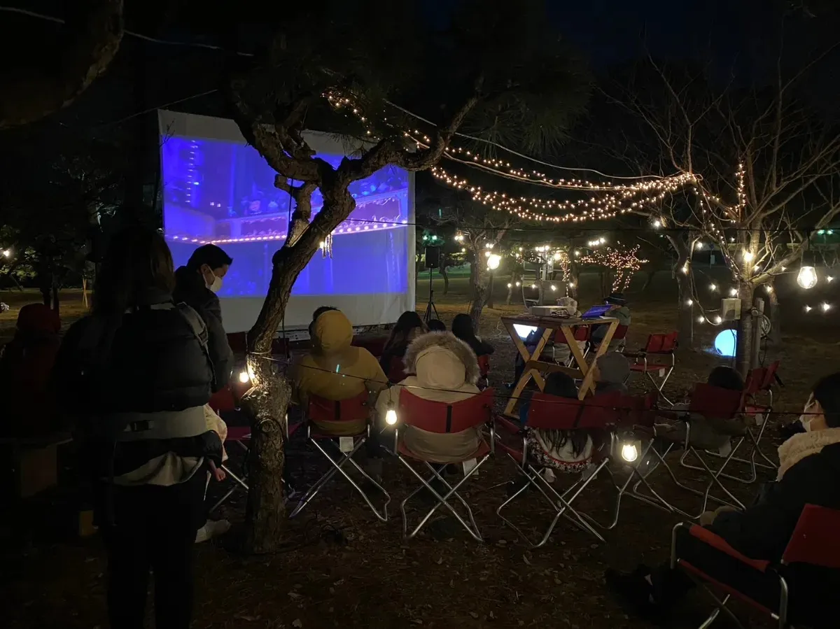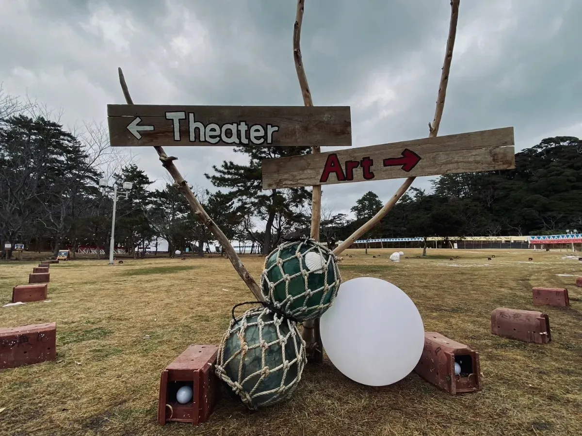 We were responsible for the entrance and theater space design for "Nihonkai Theater," a one-day-only town revitalization event held at Shiroyama Park in Takahama, Fukui Prefecture, facing the Sea of Japan.