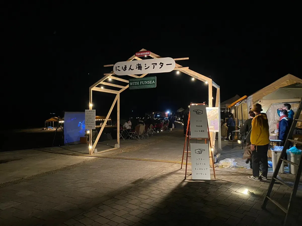 We were responsible for the entrance design, overall spatial production, and construction of the "Nihonkai Theater," a town revitalization event in Takahama, Fukui Prefecture.