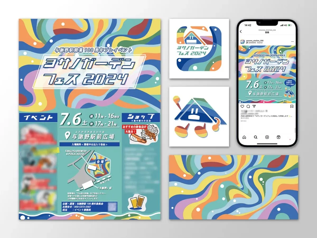 京都丹後鉄道「与謝野」駅100周年を迎えるにあたっての駅前イベントのビジュアルグラフィックを担当した。